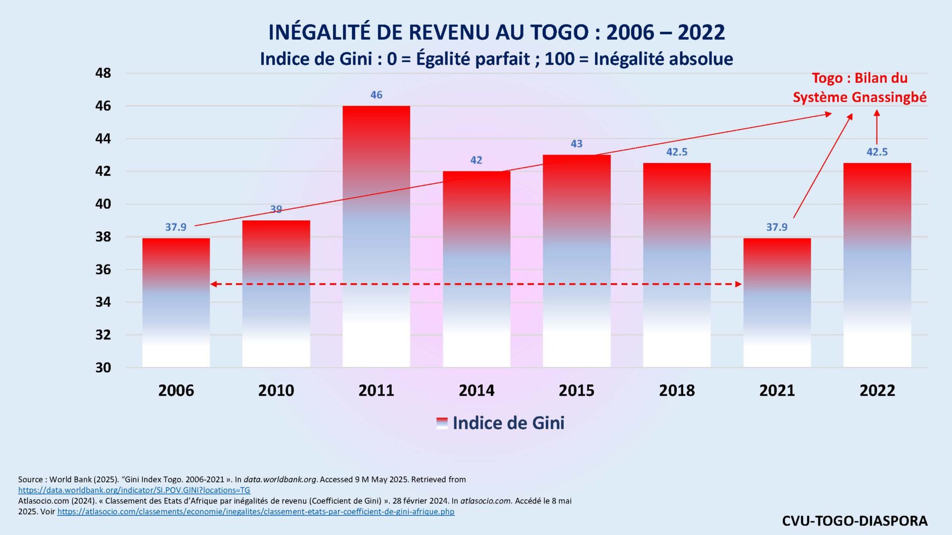 - World Bank (2025). “Gini Index Togo. 2006-2021 ». In data.worldbank.org. Accessed 9 M May 2025. Retrieved from https://data.worldbank.org/indicator/SI.POV.GINI?locations=TG ↑