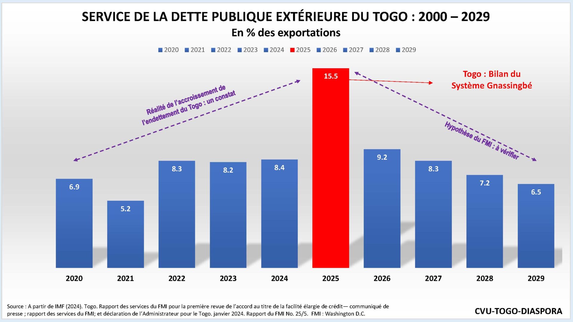 La réalité est que l’Etat Gnassingbé a creusé la dette publique du Togo et alimenté les vulnérabilités socio-économiques à l’intérieur du pays. Les objectifs de développement durable (ODD) ne pourront plus être atteints et les ingérences permanentes dans plusieurs banques liées à l’Etat Gnassingbé peuvent déclencher une crise de stabilité du secteur financier[35].