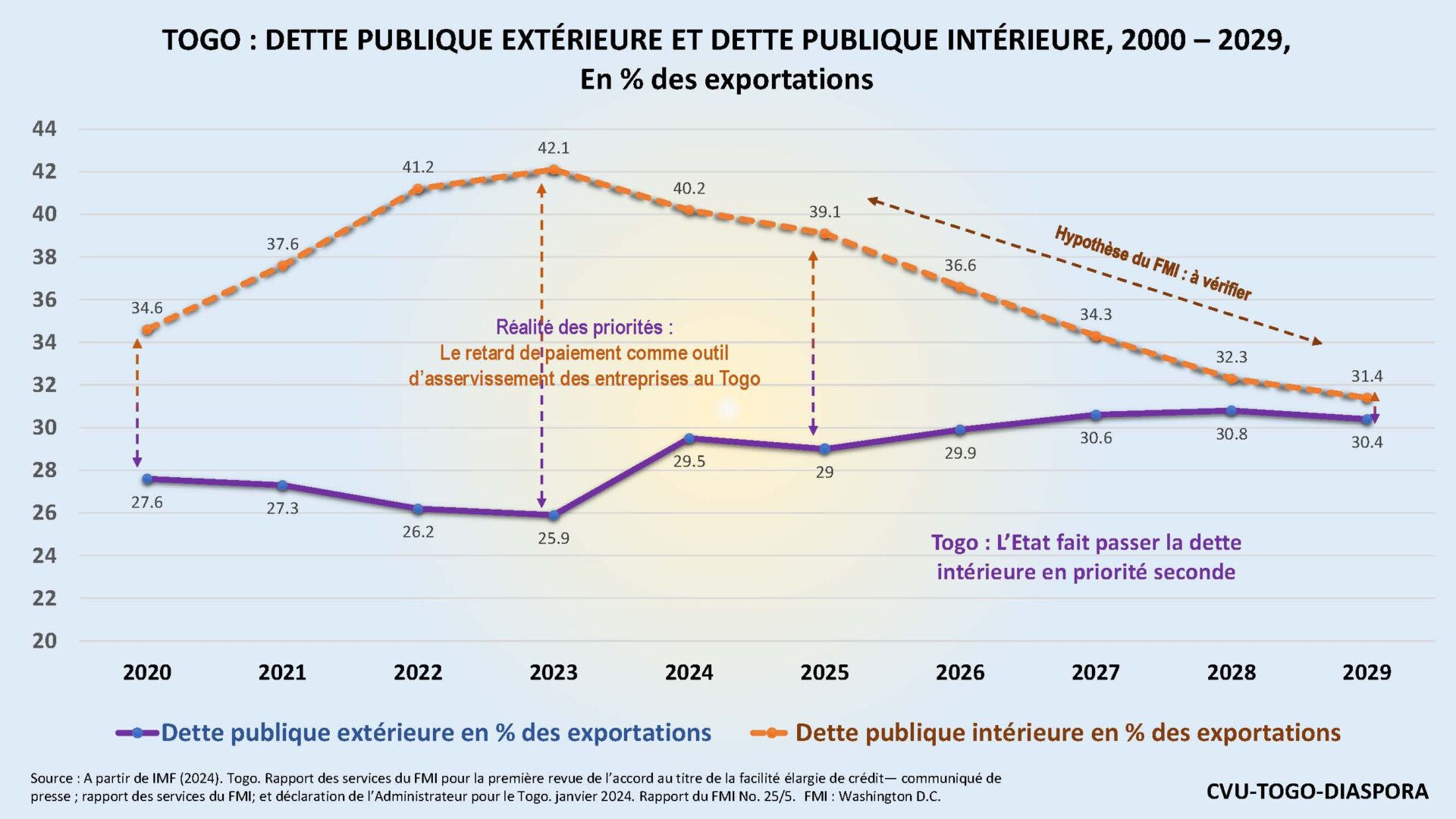 - IMF (2024). Togo. Rapport des services du FMI pour la première revue de l’accord au titre de la facilité élargie de crédit— communiqué de presse ; rapport des services du FMI; et déclaration de l’Administrateur pour le Togo. janvier 2024. Rapport du FMI No. 25/5. FMI : Washington D.C. ↑